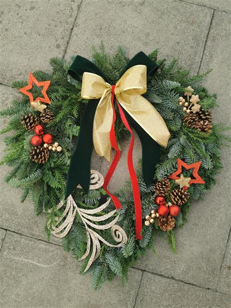 We make all wreaths fresh in-store, therefore each wreath is unique as decorations may vary slightly.