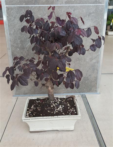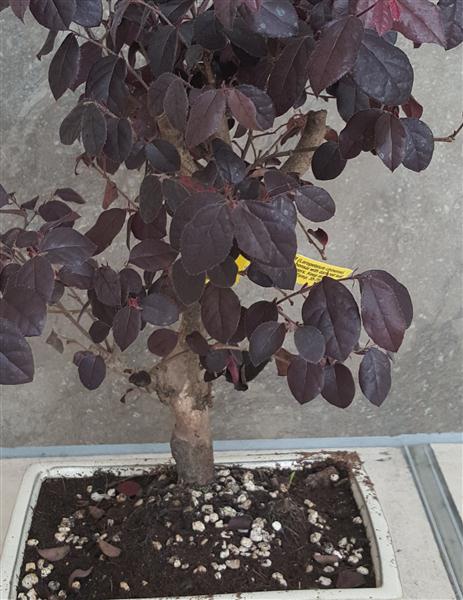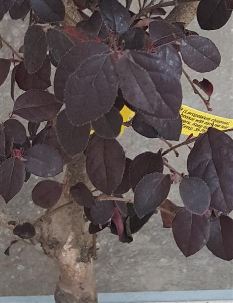 Loropetalum Chinense. Chinese Fringeflower Semi evergreen ericaceous bonsai with dark red leaf and profuse shocking pink flowers. Keep mainly outdoors but protect from frost