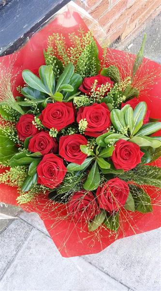 Enchant someone special this Valentine’s Day with Love Potion, a luxurious bouquet of 12 premium red Rhodos roses, hand-crafted by The Dengie Florist, your local online studio florist serving the **Dengie Peninsula**. Each rose is carefully selected for its deep red color and long-lasting beauty, making this bouquet the perfect symbol of romance and devotion.