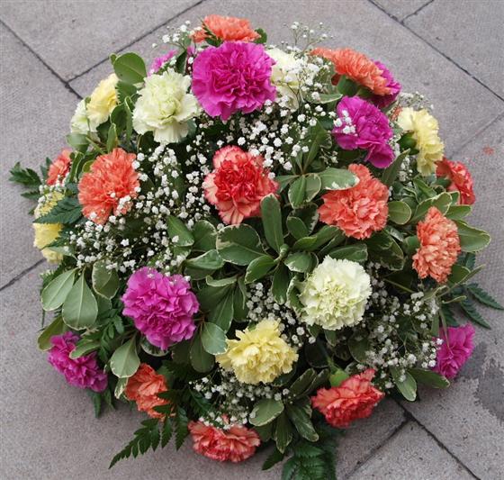 A Posy of mixed carnations and gypsophila.
