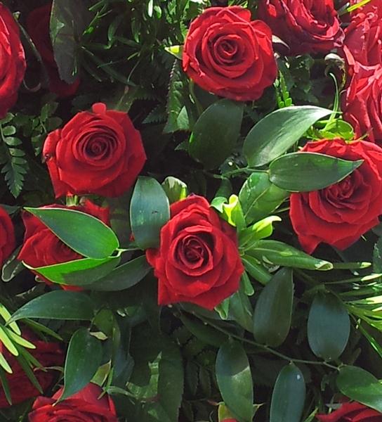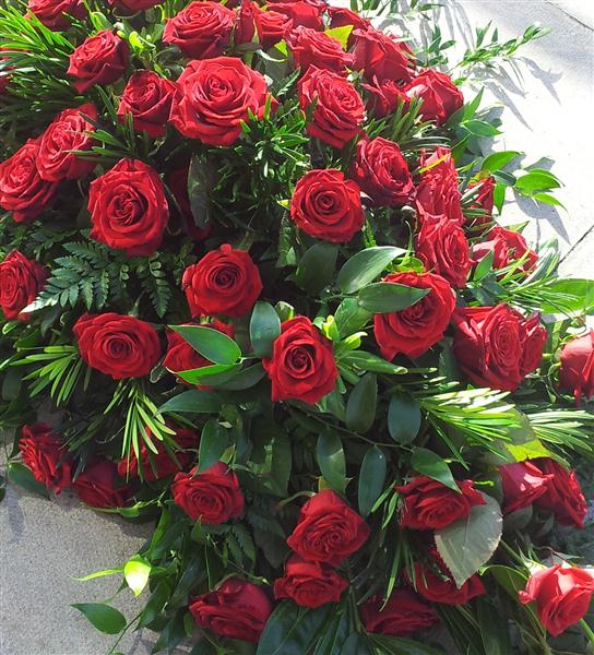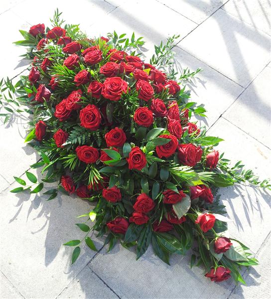 A coffin spray with red rose's. You can choose what colour rose's you would like below. Standard price is for a 3ft spray.
